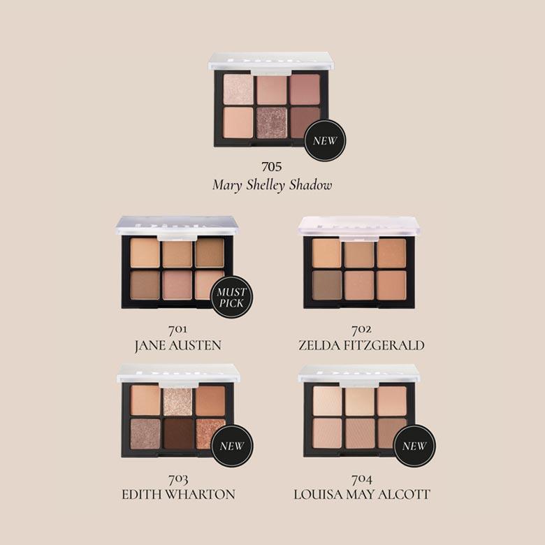 - Bảng màu đa hiệu ứng, gồm mịn lì, kem mịn, nhũ kim tuyến, nhũ ngọc trai, gel kim tuyến. Chất phấn như tan trên da, cho độ bám dính cao và bền màu