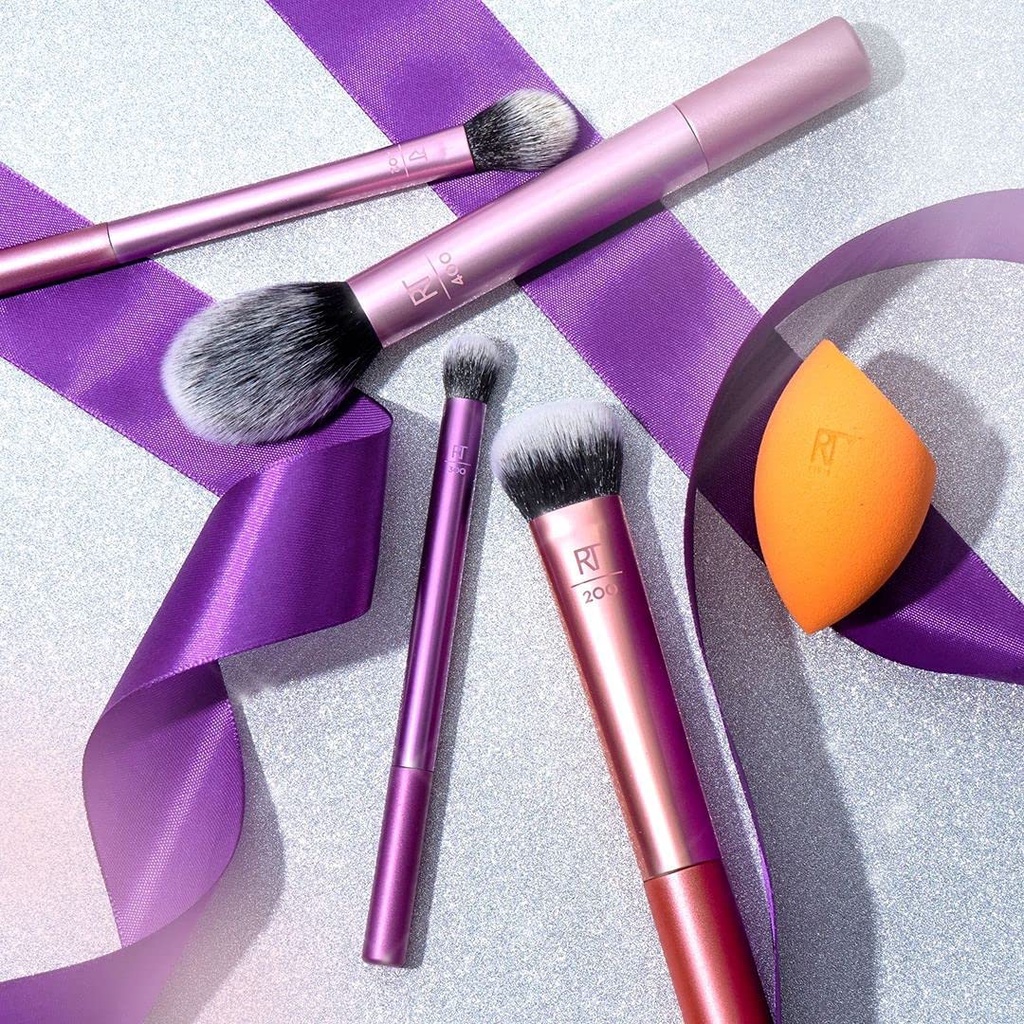 Bộ Cọ Kèm Mút Trang Điểm Real Techniques Everyday Essentials được thiết kế để sử dụng với kem nền, che khuyết điểm, phấn má hồng, bắt sáng (highlighter), phấn phủ, phấn mắt.