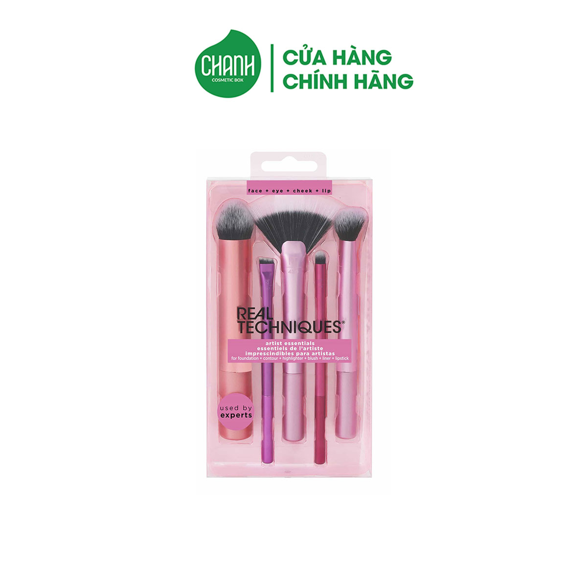 Real Techniques Artist Essentials phù hợp sử dụng với kem nền (foundation), tạo khối (contour), bắt sáng (highlighter), má hồng (blush), kẻ mắt (liner), son môi (lipstick).