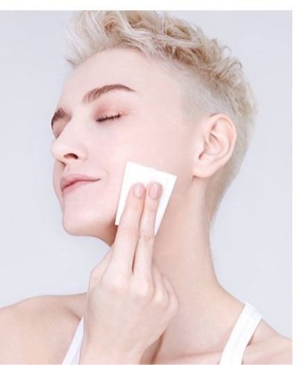 Thấm dung dịch tẩy trang lên bông, sau đó dùng bông lau những vùng da cần tẩy trang.