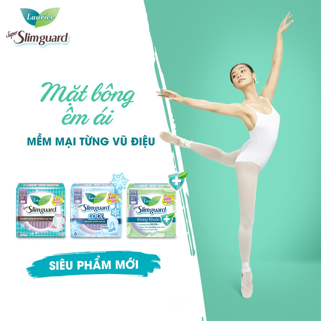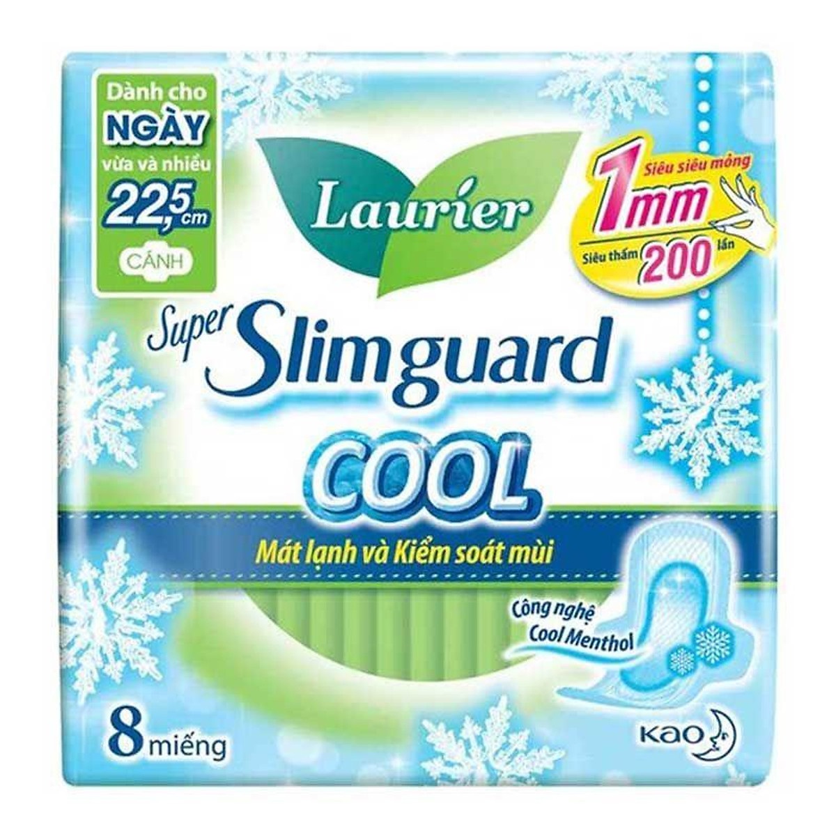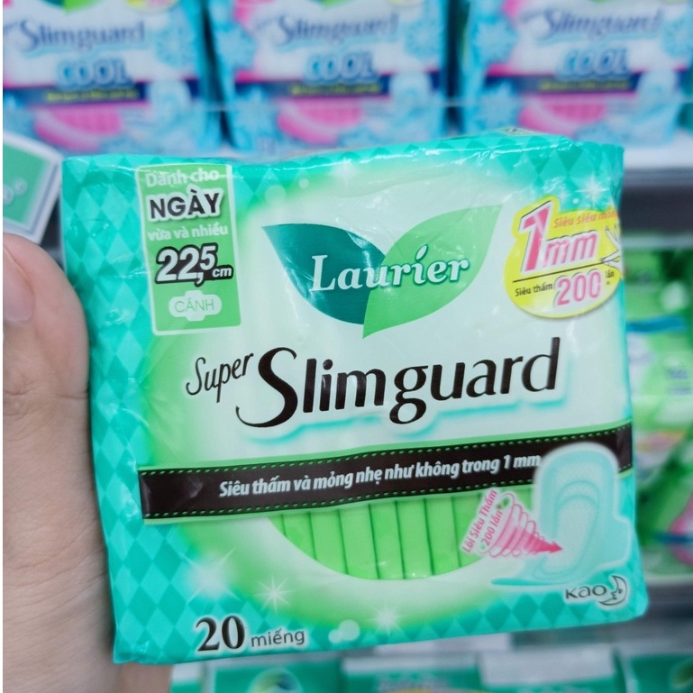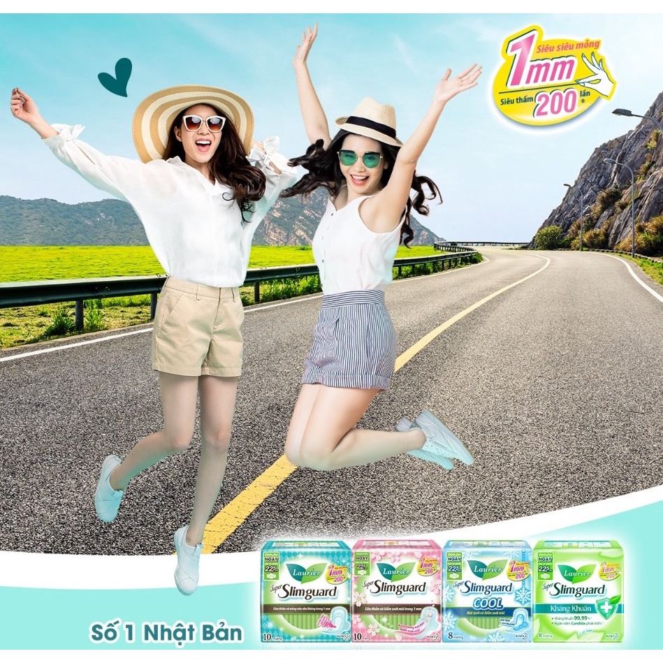 Băng Vệ Sinh Laurier Super Slimguard Cool Mát Lạnh & Kiểm Soát Mùi 22,5cm 8 Miếng cao cấp Siêu mỏng 1mm Siêu thấm 200 lần cho cảm giác thoáng nhẹ và tự tin