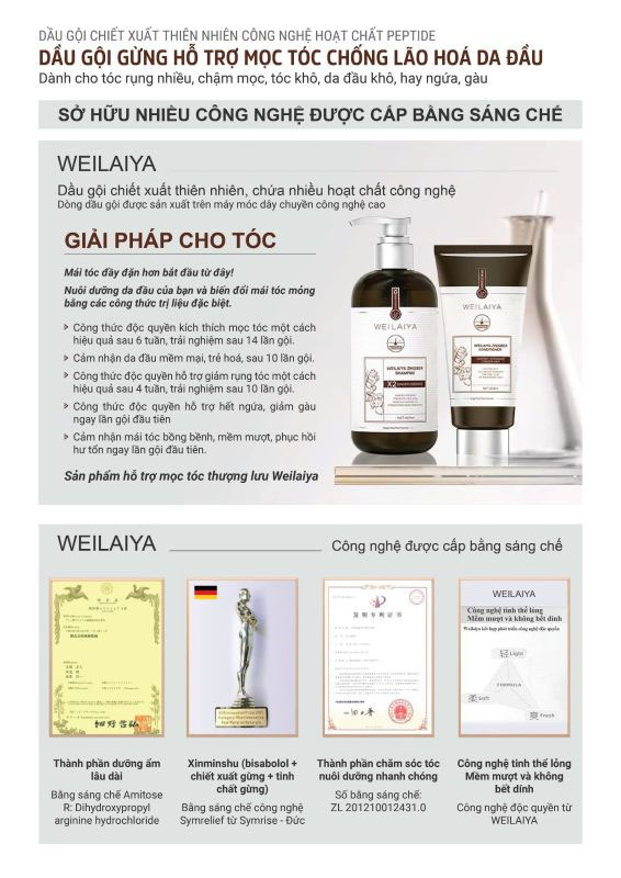 Các thành phần có trong dầu gội gừng hỗ trợ mọc tóc và giảm lão hóa da đầu Weilaiya Luxury