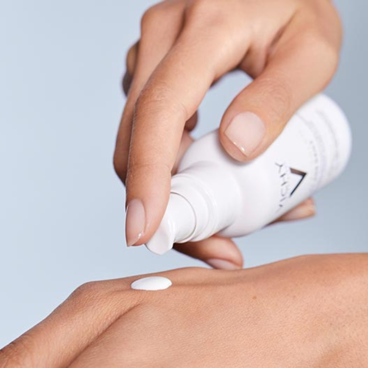 - Lấy một lượng sản phẩm kem chống nắng vừa đủ ra lòng bàn tay. Dùng tay đã thoa kem chống nắng vỗ nhẹ lên bề mặt da.