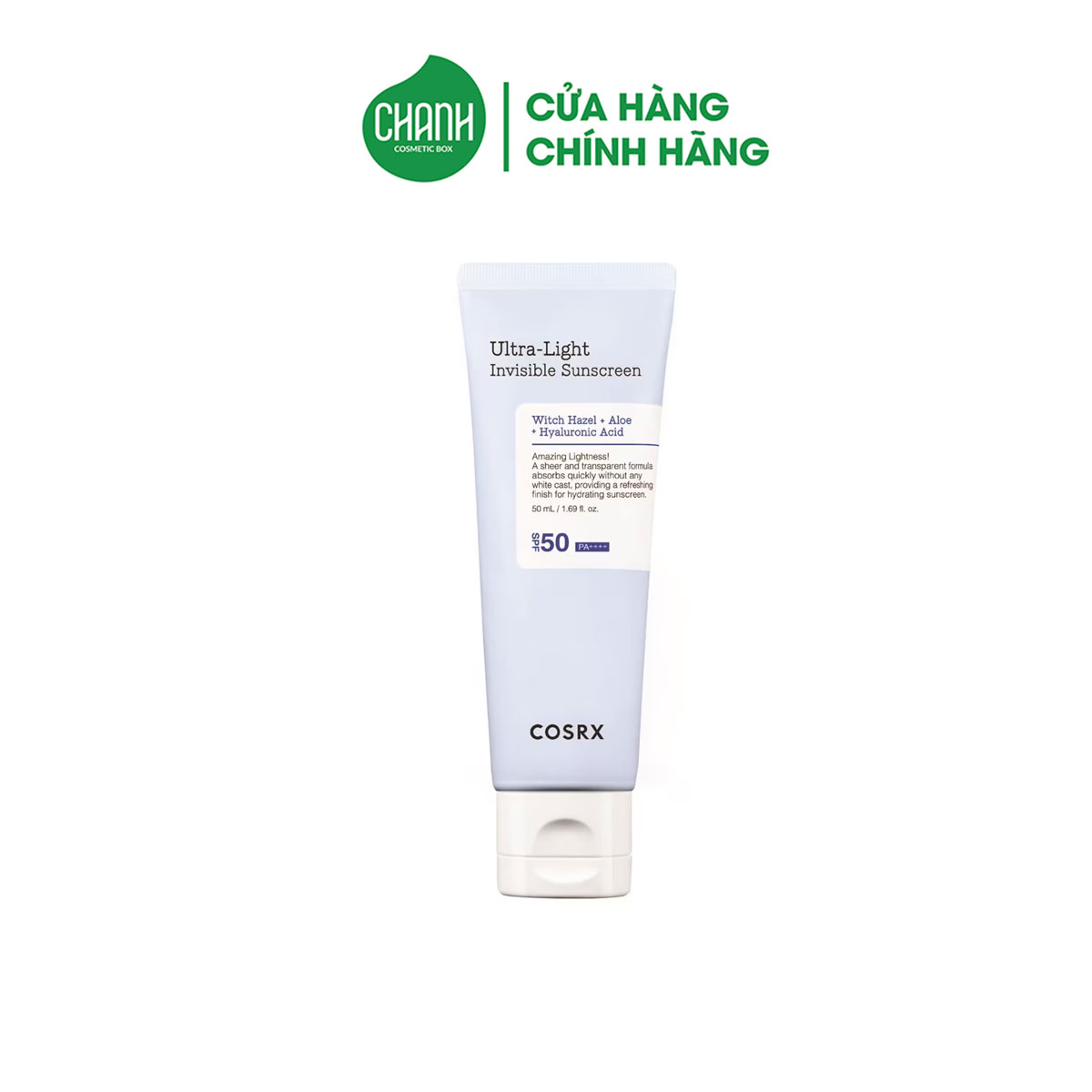 Kem chống nắng Cosrx Ultra-Light Invisible Sunscreen SPF50 PA++++ là sản phẩm chống nắng tiên tiến, mang đến sự bảo vệ mạnh mẽ khỏi tác hại của tia UV mà không gây nhờn rít hay vệt trắng trên da. Kem chống nắng này thẩm thấu nhanh, mang đến một lớp bảo vệ vô hình, mịn màng mà không gây nặng mặt. Sản phẩm không chỉ giúp bảo vệ da mà còn cung cấp độ ẩm và dưỡng chất, phù hợp cho mọi loại da, đặc biệt là da nhạy cảm.