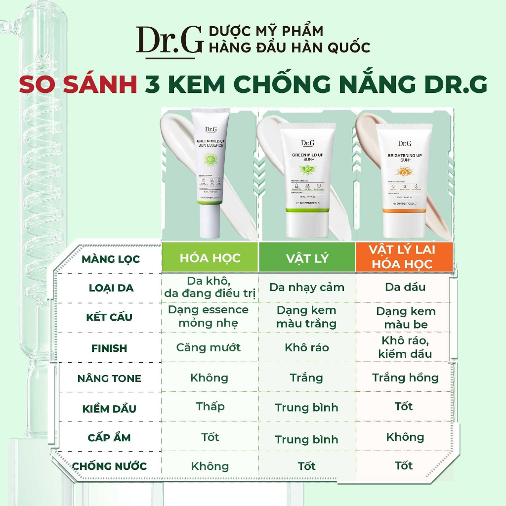 2. Kem Chống Nắng Dr.G Green Mild Up Sun+ SPF 50+/ PA++++ 50ml là Kem Chống Nắng Vật Lý, Chống Ánh Sáng Xanh, Dành Cho Da Nhạy Cảm
