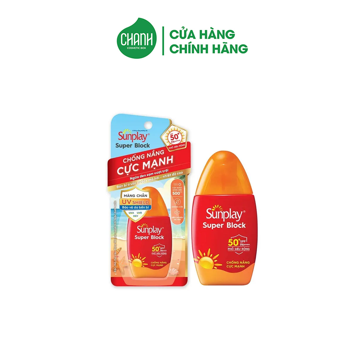 Sunplay Super Block có thành phần chính là Vitamin C, E, Pro Vitamin B5 và Hyaluronic Acid. Trong đó, Vitamin C giúp ức chế hình thành hắc tố melanin, dưỡng trắng da, cải thiện những vùng da không đều màu, giảm thâm nám, cải thiện kết cấu làn da, chống lão hóa. Vitamin E giúp chống nắng, bảo vệ da khỏi tia cực tím, dưỡng ẩm, ngăn ngừa lão hóa, đẩy nhanh quá trình làm lành vết thương, tạo lớp hàng rào bảo vệ da. Pro Vitamin B5 hay còn gọi là Panthenol có khả năng làm mềm và dịu da, dưỡng ẩm, kháng viêm, kháng khuẩn, ngăn ngừa lão hóa, củng cố lớp hàng rào bảo vệ da. Hyaluronic Acid giúp tăng cường khả năng dưỡng ẩm, cho da mịn màng, căng bóng.