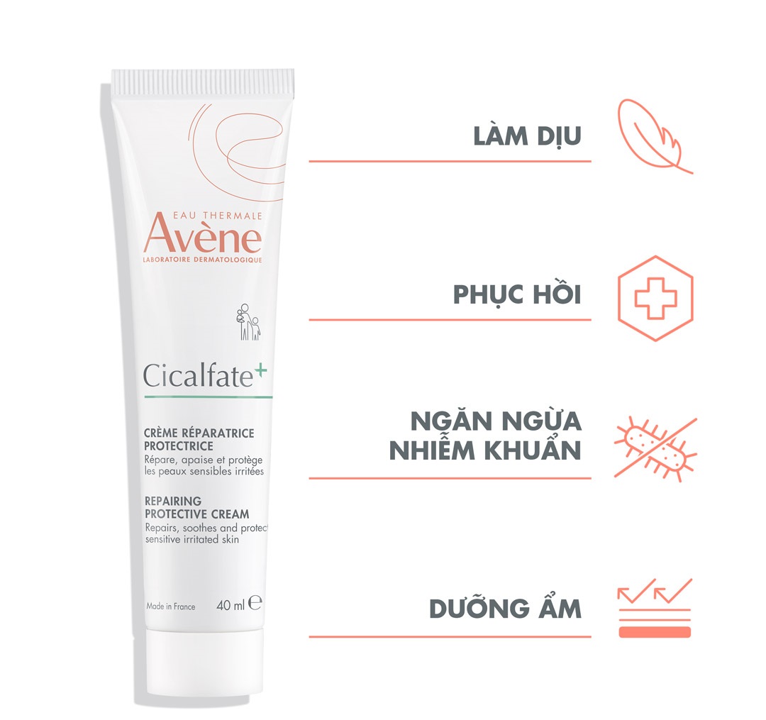 - Avene Cicalfate Repair Cream không chỉ giúp làm da dịu mát, chống kích ứng, mà những hoạt chất đặc biệt còn hỗ trợ hồi phục da, kích thích tái tạo da, làm lành vết thương và lành sẹo nhanh chóng, làm dịu vết mẩn đỏ chỉ trong vài ngày sử dụng.