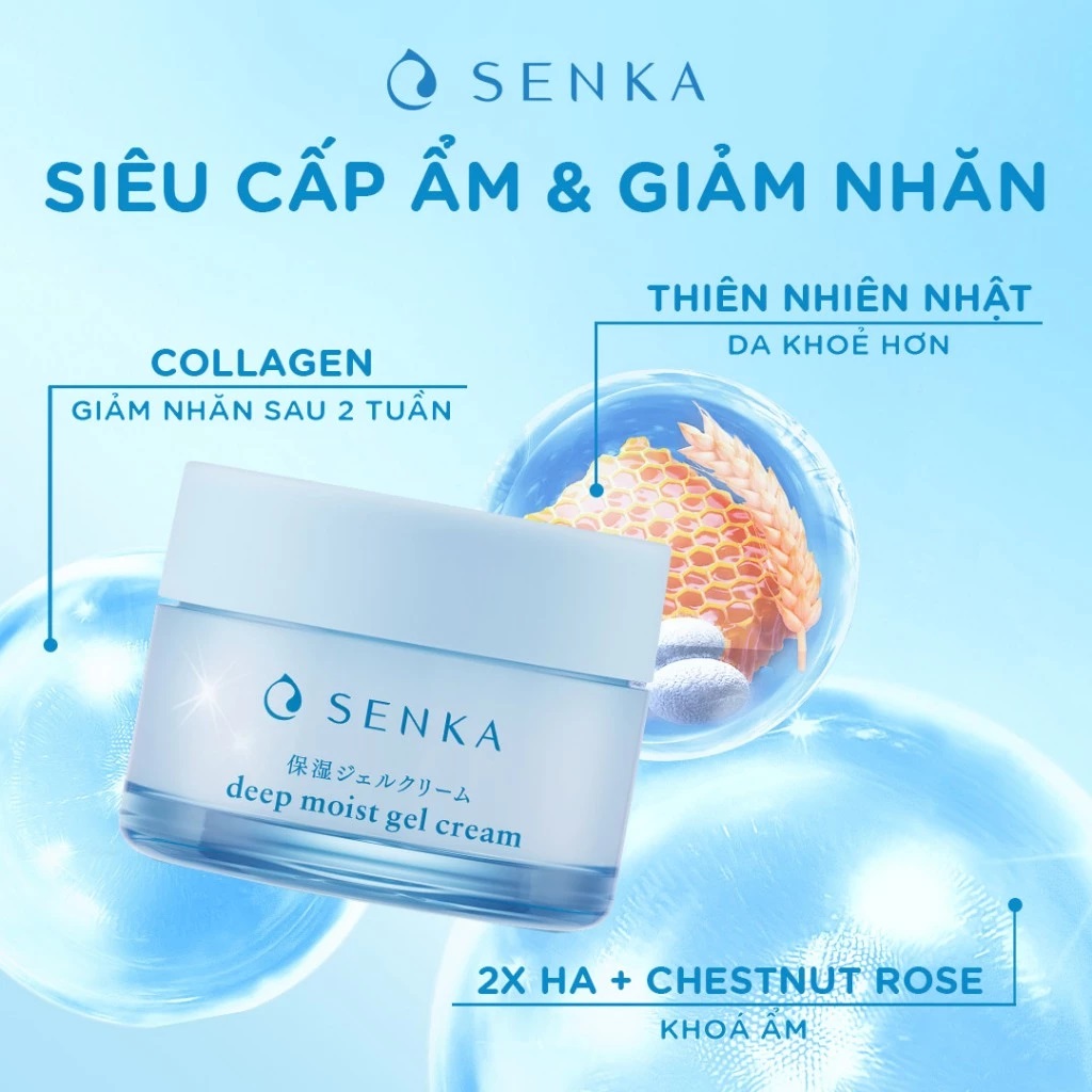 Kem Dưỡng Cấp Ẩm Chuyên Sâu Dạng Gel Senka Deep Moist Gel Cream 50g giúp tạo thành "mặt nạ nước trong suốt" - vừa khóa ẩm tối ưu vừa giữ các dưỡng chất từ các bước chăm sóc da trước đó. Dừng như mặt nạ ngủ.
