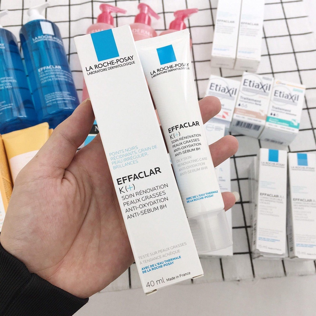 Kem dưỡng giúp ngừa mụn đầu đen và giảm bóng nhờn La Roche Posay Effaclar K+ 40ml với sự kết hợp của những hoạt chất như LHA, Airlicium, Sebulyse giúp giảm mụn, thông thoáng lỗ chân lông, kiểm soát bã nhờn. Đặc biệt với hợp chất Vitamin E & Carnosine tăng cường hiệu quả chống oxy hóa và các gốc tự do, giúp giảm mụn đầu đen. Da được cải thiện và không bóng nhờn suốt 8h.