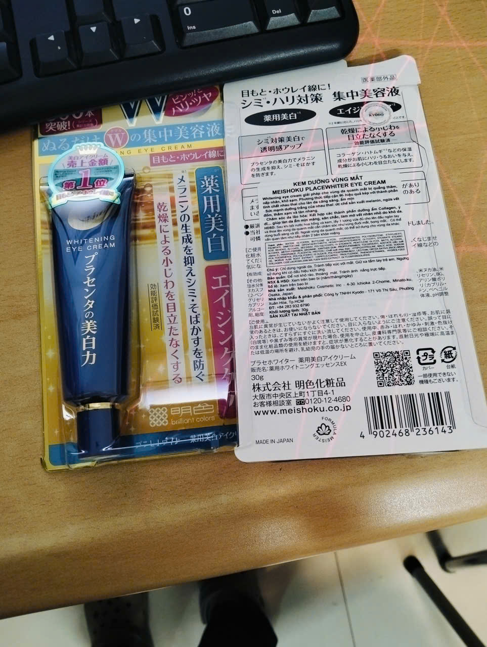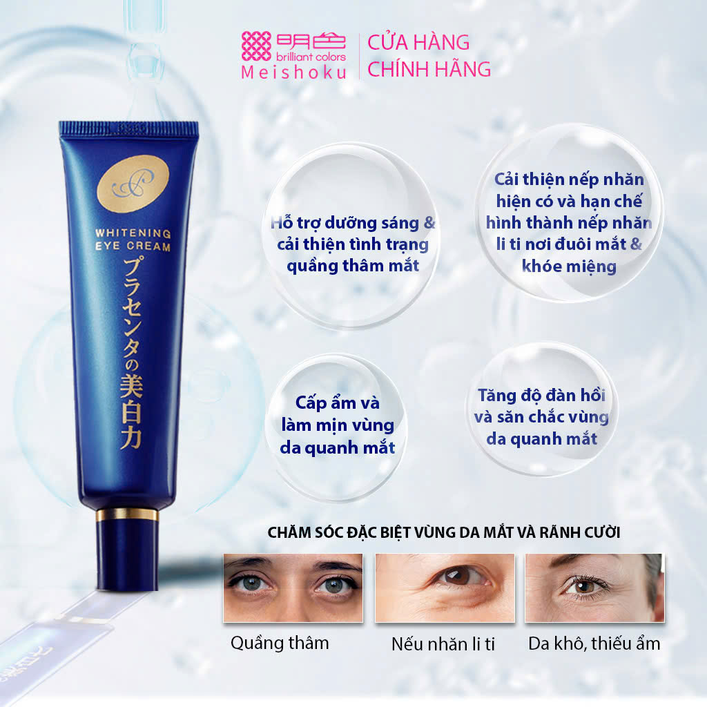 Kem dưỡng mắt Meishoku nhau thai, chứa nồng độ cao tinh chất nhau thai cho đôi mắt khỏe mạnh với 2 tác dụng chính: giảm thâm và chống lão hóa.