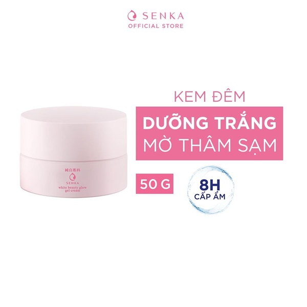 Thành phần chính của Kem Dưỡng Trắng Da Ban Đêm Senka White Beauty Glow Gel Cream là NIANCINAMIDE - một dạng của Vitamin B3 - giúp chống lại các tác hại của tia tử ngoại, ức chế hoạt động của tế bào hắc tố (Melanin), đồng thời tăng khả năng chống ôxi hóa và kích thích sản xuất Ceramides, bảo vệ độ ẩm cho da giúp da trắng sáng đều màu.Chiết xuất Hoa Anh Đào Nhật Bản: ngăn ngừa sự hình thành hắc sắc tố melanin từ đó làm mờ các vết thâm nám; kích thích sản sinh Collagen và Elastin, hạn chế hình thành nếp nhăn, cho da săn chắc và đàn hồi.Mật Ong: chống oxy hoá, cung cấp vitamin và khoáng chất, giúp da mềm mại và giàu sức sống.