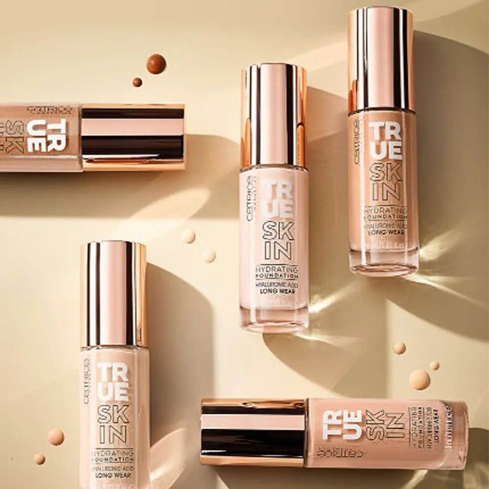 Kem nền Catrice True Skin Hydrating Foundation dưỡng ẩm cho làn da không bị khô hoặc bị đổ dầu trong suốt thời gian dài sử dụng. Từ đó, tạo ra một lớp nền căng mướt và mịn màng không bị cakey như một số loại kem nền thuần có tính kiềm dầu quá cao.