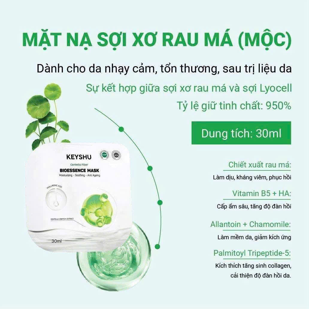 1. Mặt Nạ Sợi Xơ Rau Má Cấp Ẩm, Hỗ Trợ Ngừa Lão Hóa Keyshu Bioessence Mask 30ml