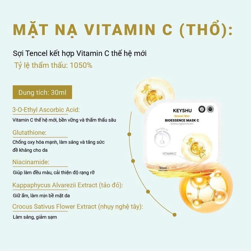 Keyshu Bioessence Mask C 30ml - Vitamin C giúp dưỡng ẩm, làm dịu và hỗ trợ dưỡng sáng