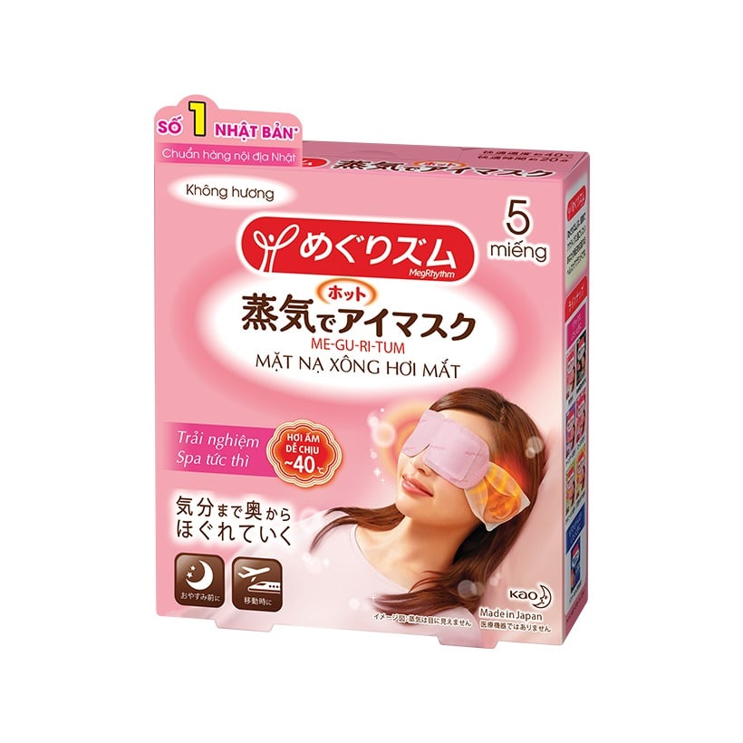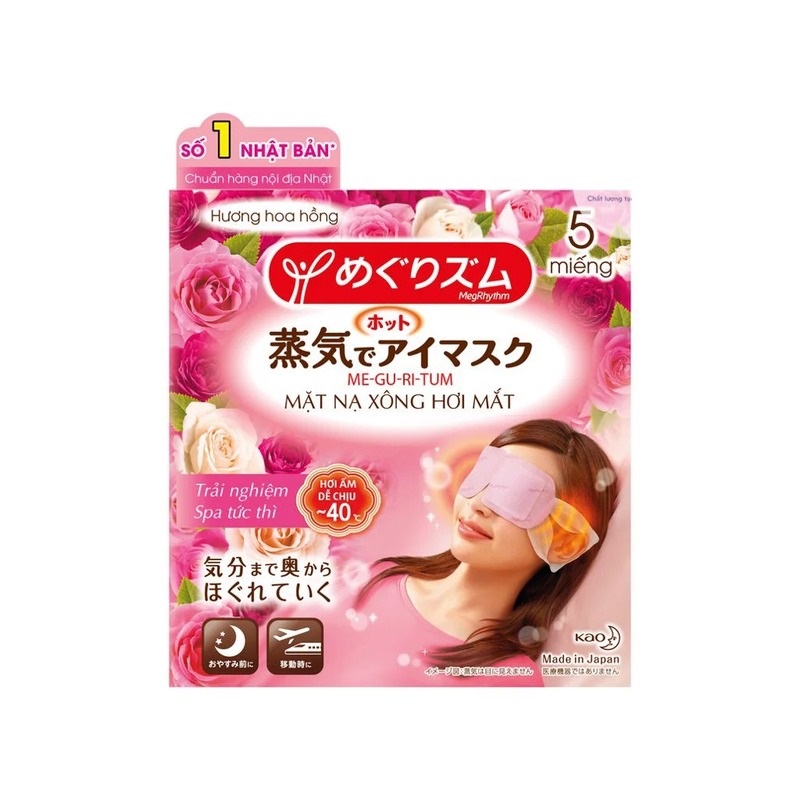 Nếu bạn là người thường xuyên phải làm việc với máy tính, đọc sách, viết lách nhiều hoặc bạn bị mất ngủ, thiếu ngủ… thì rất dễ bị khô và mỏi mắt. Hãy dành ra ít phút vào mỗi buổi tối hoặc trong giờ nghỉ trưa để thư giãn cho đôi mắt, làm dịu hệ thần kinh và giảm mệt mỏi, căng thẳng với Mặt Nạ Xông Hơi Mắt MegRhythm (Me-gu-ri-tum) đến từ tập đoàn Kao nổi tiếng của Nhật Bản. Đây là phương pháp vô cùng đơn giản và tiện lợi, là sự kết hợp giữa hơi ấm dễ chịu 40 độ C và mùi hương nhẹ nhàng tự nhiên như hoa Cúc, hoa Hồng, Lavender, Cam Yuzu… Mặt nạ sẽ giúp làm dịu và tan biến đi sự mệt mỏi cho vùng da quanh mắt, đồng thời hỗ trợ thúc đẩy lưu thông mạch máu để giảm quầng thâm quanh mắt, mang lại cho bạn những giây phút thư giãn tuyệt vời và một đôi mắt tươi tỉnh hơn sau khi sử dụng.