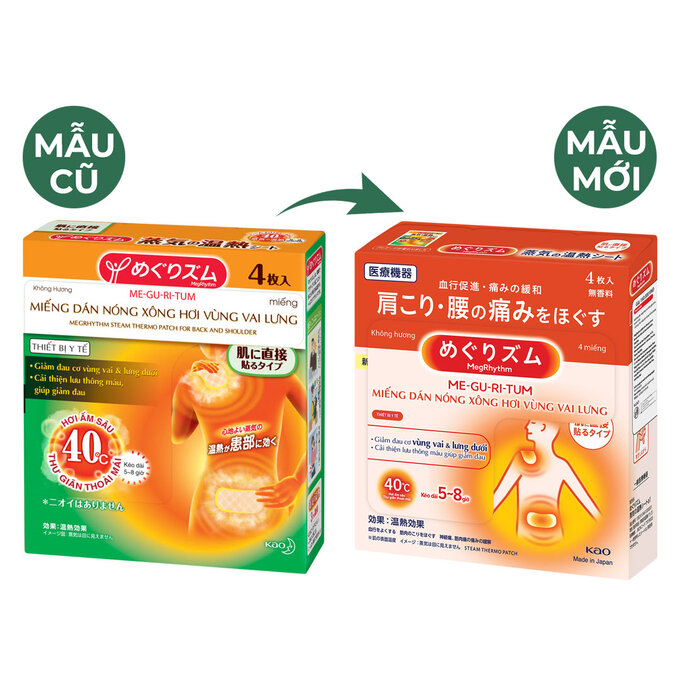 MegRhythm (Me-gu-ri-tum) Miếng Dán Nóng Xông Hơi Vùng Vai Lưng 4 Miếng/ Hộp
