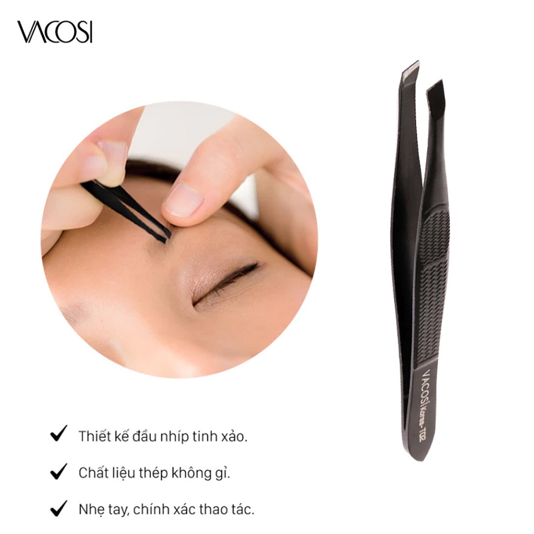 - Nhíp đầu xéo VACOSI được sản xuất theo công nghệ Hàn Quốc, sử dụng chất liệu inox không rỉ, phủ sơn đen cao cấp.