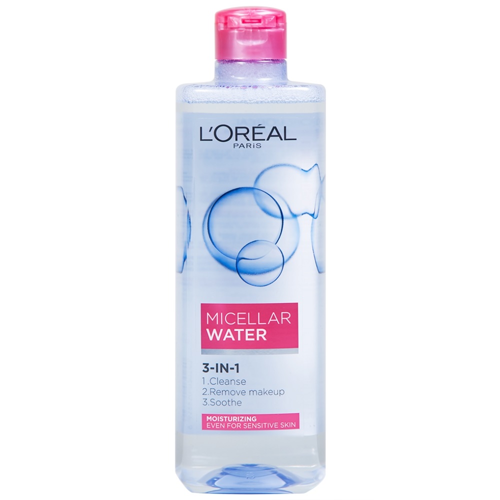 3. L'Oréal Paris Micellar Water 3-in-1 Moisturizing Even For Sensitive Skin (hồng): phù hợp da khô.