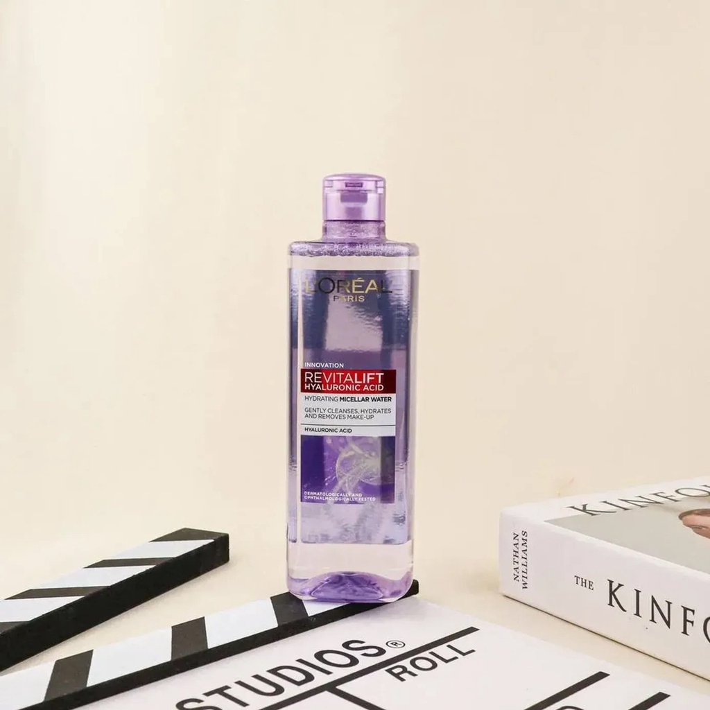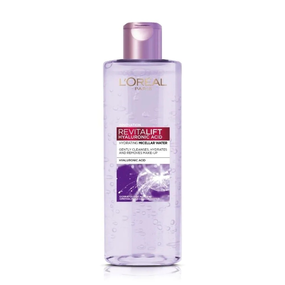 5.L'oreal Revitalift Hyaluronic Acid Hydrating Micellar Water (Tím): phù hợp da khô.