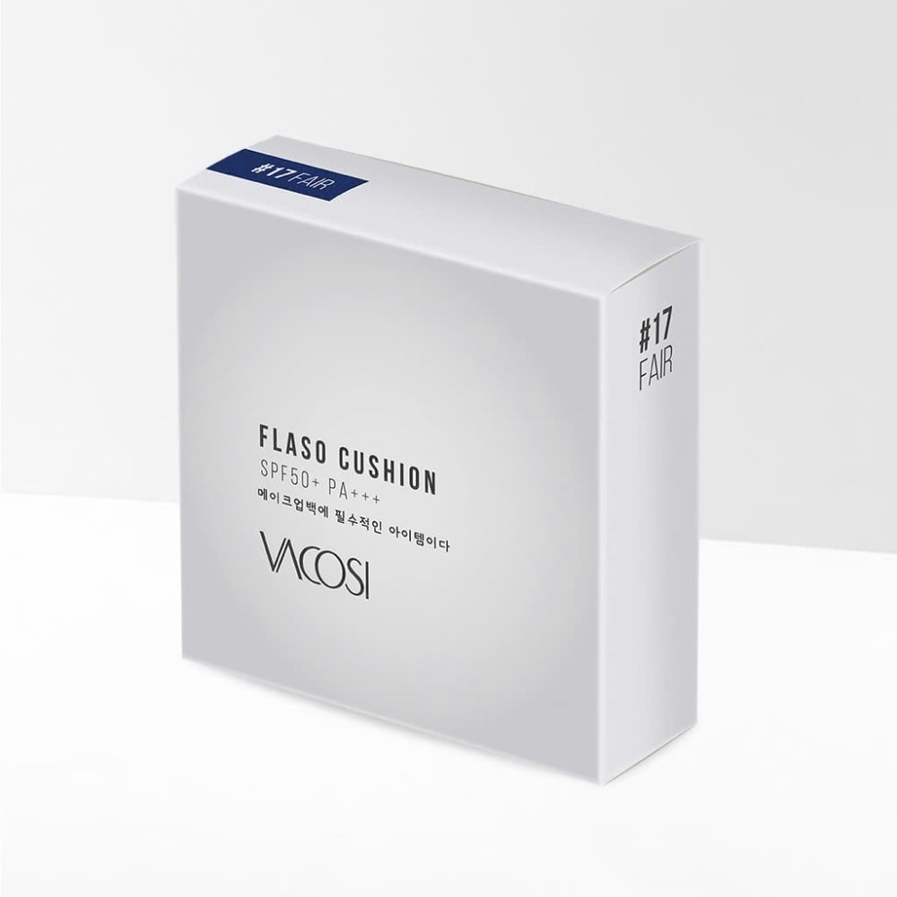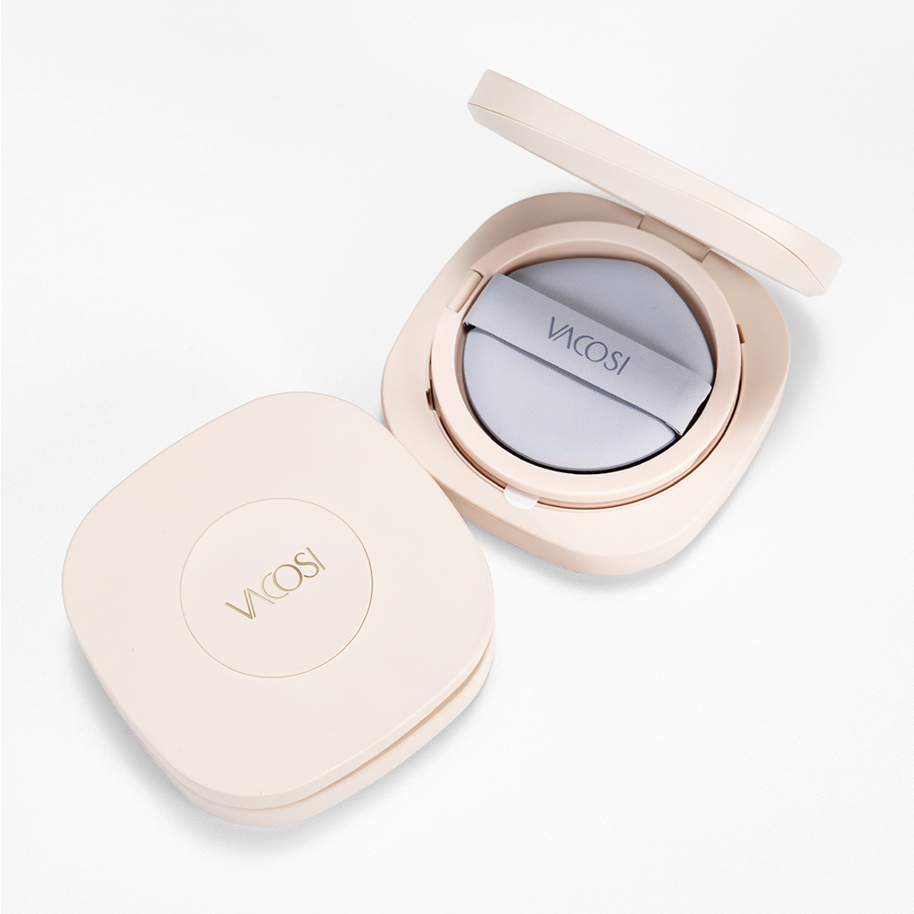 - S - Second-skin: trên nền công thức Water Blend bổ sung thêm Arbutin dưỡng sáng da và Dầu dừa : trang điểm, dưỡng, khóa ẩm và bảo vệ da mỗi ngày. VACOSI Flaso Cusion được nghiên cứu theo hệ màu neutral không kén undertone da.