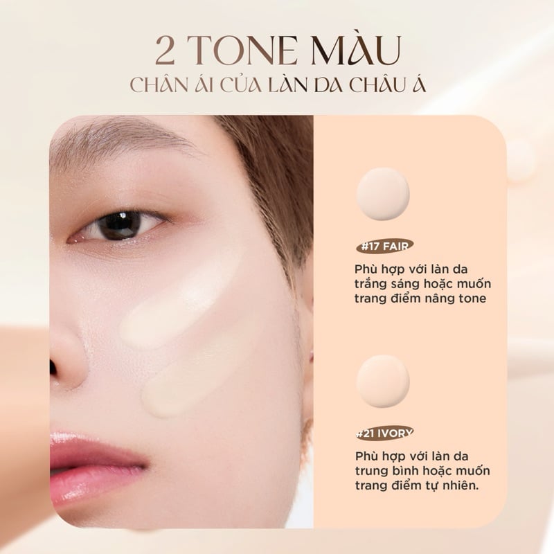 - #21 Ivory - Tone sáng tự nhiên: Giải quyết tốt các vấn đề: đều màu da, tối xỉn màu, tone nền ấm.
