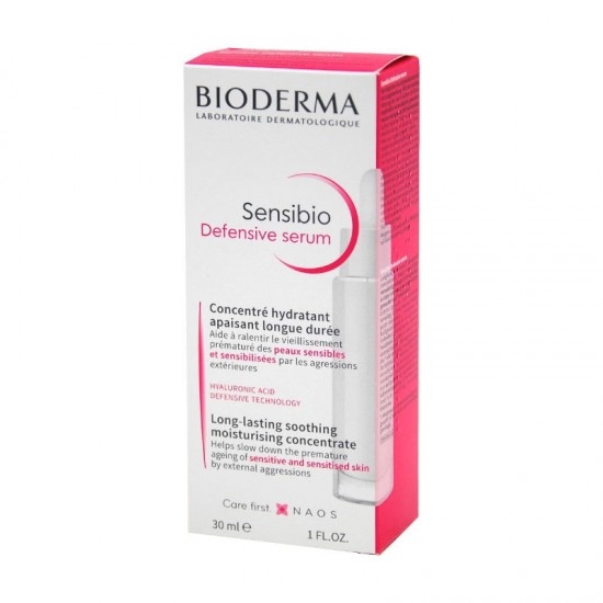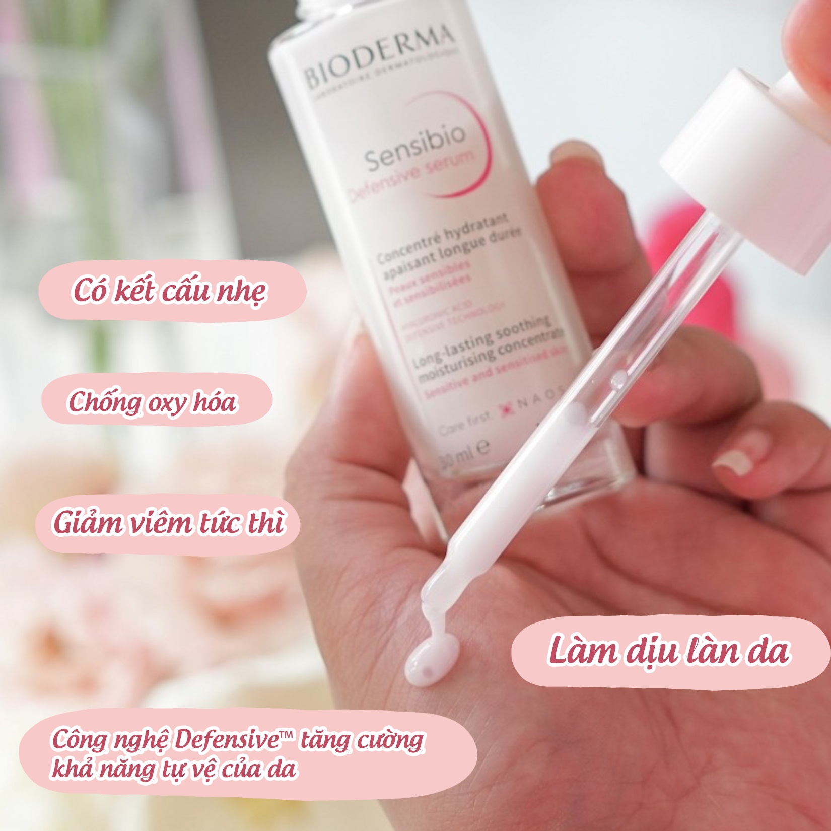 Serum Dưỡng Ẩm, Làm Dịu Cho Da Nhạy Cảm Bioderma Sensibio Defensive Serum 30ml là tinh chất dưỡng thuộc thương hiệu dược mỹ phẩm Bioderma đến từ Pháp. Tinh chất giúp dưỡng ẩm và làm dịu da, đồng thời cải thiện nếp nhăn, hạn chế các dấu hiệu lão hóa da sớm, bảo vệ da trước các tác động từ bên ngoài cho làn da nhạy cảm.