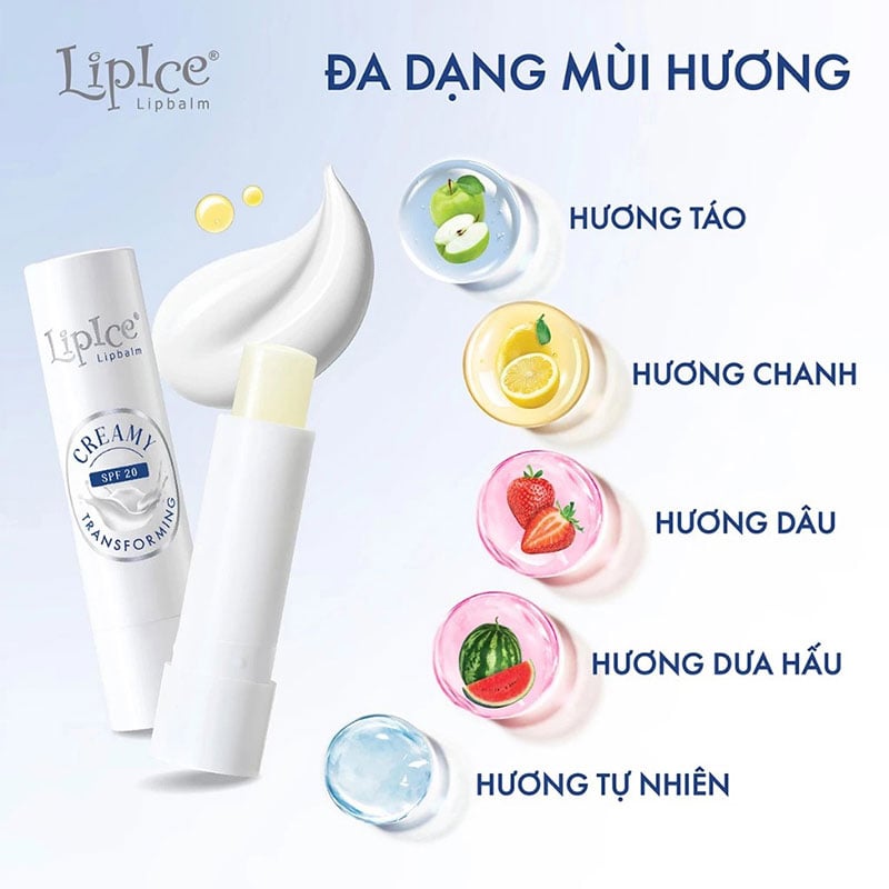 Son dưỡng môi không màu chuyển kem mịn LipIce Creamy áp dụng thêm các thành phần dưỡng ẩm và chống nắng