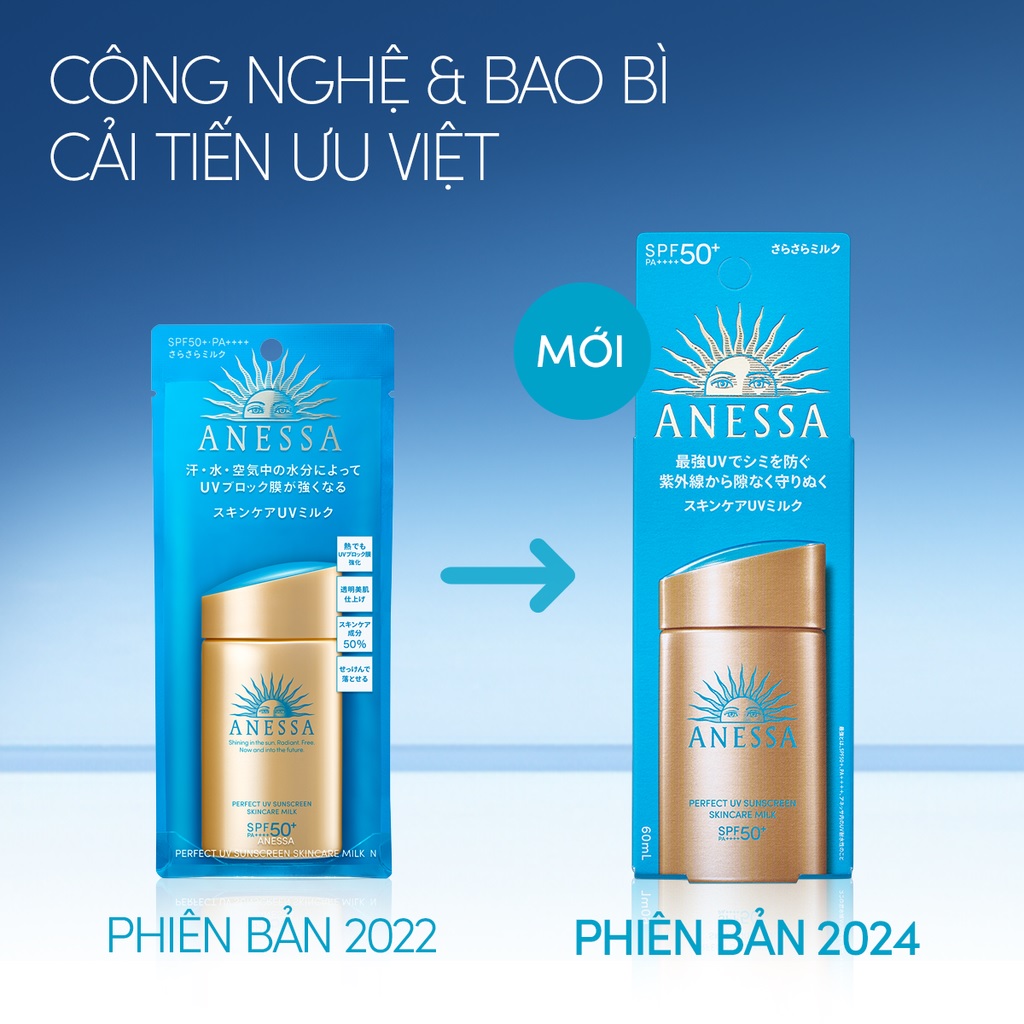 Sữa chống nắng kiềm dầu ANESSA Gold Milk SPF50+ PA++++ phiên bản mới với bao bì giấy thân thiện hơn với môi trường.
